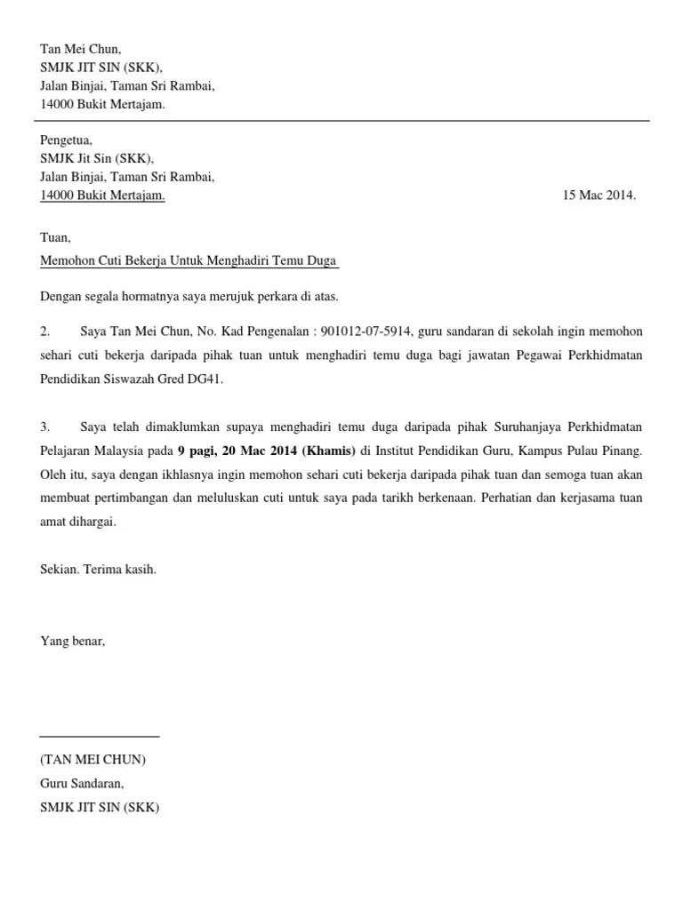 Oleh sebab itu, anda perlulah menulis surat memohon cuti kerja untuk mendapatkan kebenaran majikan. Contoh format surat rasmi permohonan cuti have a graphic associated with the othercontoh format surat rasmi permohonan cuti in addition it will .